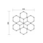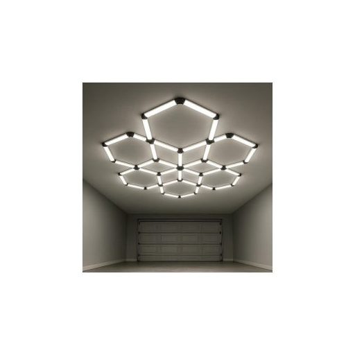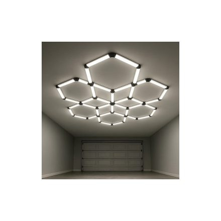 A Hexagon SET 294W-os LED világítási rendszer a modern technológia és az indusztriális stílus találkozása, amely 12 darab hatszögletű modulból épül fel a maximális térbevilágítás érdekében. Ez a tekintélyes, 483 x 243 cm-es kiterjedésű, méhsejt mintázatú konfiguráció lenyűgöző, 35 280 lumen fényerőt biztosít, amellyel a nagyobb alapterületű helyiségeket, például autókozmetikákat, detailing stúdiókat és bemutatótermeket is tökéletesen egyenletes, árnyékmentes fénnyel tölti meg. A 6000K hideg fehér színhőmérséklet tűéles kontrasztot és tiszta látási viszonyokat teremt, ami elengedhetetlen a precíziós munkavégzéshez és az exkluzív hangulat megteremtéséhez. A rendszer magas, Ra ≥ 80 színvisszaadási indexe garantálja a valósághű színeket, miközben az AC165-265V feszültségtartomány stabil és villódzásmentes működést kínál a 25 000 órás élettartam alatt. Ez a moduláris rendszer nemcsak kiemelkedő fényhatást biztosít, hanem futurisztikus dizájnelemként is szolgál, amely azonnali bekapcsolással és alacsony hőtermeléssel teszi hatékonnyá a munkavégzést bármely stúdióban vagy műhelyben.