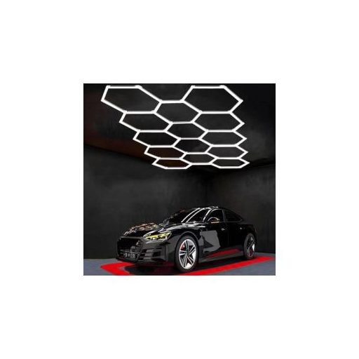 A Hexagon SET 456W-os LED világítási rendszer a moduláris technológia és a monumentális fényerő csúcskategóriás ötvözete, amely 14 darab nagyméretű hatszögletű modulból épül fel. Ez a professzionális konfiguráció lenyűgöző, 54 720 lumen fényáramot biztosít, amellyel a legnagyobb alapterületű helyiségeket, például autókozmetikákat, detailing stúdiókat, bemutatótermeket és modern műhelyeket is tökéletesen egyenletes, árnyékmentes fénnyel tölti meg. A 400 x 233 cm-es kiterjedésű, futurisztikus méhsejt mintázat a 6000K hideg fehér színhőmérséklettel párosulva ideális munkakörnyezetet teremt, ahol a látvány és a precizitás egyaránt kulcsfontosságú. A rendszer magas, Ra ≥ 80 színvisszaadási indexe garantálja a valósághű színeket, miközben az AC165-265V feszültségtartomány stabil és vibrálásmentes működést kínál a 25 000 órás élettartam alatt. Ez a moduláris rendszer nemcsak kiemelkedő fényhatást biztosít, hanem modern stíluselemként is funkcionál, amely azonnali bekapcsolással és alacsony hőtermeléssel teszi hatékonnyá és látványossá a munkát bármely exkluzív stúdióban vagy garázsban.