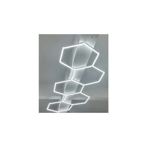 A Hexagon SET 203W-os LED világítási rendszer a modern technológia és az indusztriális stílus találkozása, amely kifejezetten a nagy alapterületű, hosszúkás helyiségek professzionális megvilágítására lett tervezve. Ez a komplett, 5 hatszögletű modulból álló szett lenyűgöző, 24 360 lumen fényerőt biztosít, amellyel a legnagyobb tereket is holttérmentesen és tűéles kontrasztokkal világítja be. A 123 x 374 cm-es kiterjedésű, méhsejt mintázatú alakzat nemcsak esztétikailag emeli ki a helyiséget, hanem a 6000K hideg fehér fénynek köszönhetően ideális munkakörnyezetet teremt az autókozmetikák, detailing stúdiók, bemutatótermek vagy modern konditermek számára. A rendszer magas, Ra ≥ 80 színvisszaadási indexe garantálja a valósághű színeket, miközben az AC165-265V feszültségtartomány stabil és villódzásmentes működést kínál a 25 000 órás élettartam alatt.