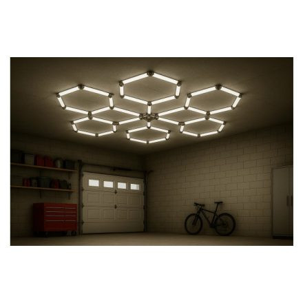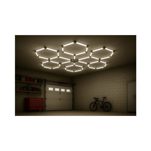 A Hexagon SET 306W-os LED világítási rendszer a modern indusztriális design és a brutális fényerő találkozása, amely 6 darab nagyméretű hatszögletű modulból épül fel. Ez a professzionális konfiguráció lenyűgöző, 36 720 lumen fényáramot biztosít, amellyel a tágasabb helyiségeket is tökéletesen egyenletes, árnyékmentes fénnyel tölti meg. A 268 x 305 cm-es kiterjedésű, futurisztikus méhsejt mintázat a 6000K hideg fehér színhőmérséklettel párosulva ideális munkakörnyezetet teremt autókozmetikák, detailing stúdiók, bemutatótermek és modern műhelyek számára, ahol a látvány és a precizitás egyaránt kulcsfontosságú. A rendszer magas, Ra ≥ 80 színvisszaadási indexe garantálja a valósághű színeket, miközben az AC165-265V feszültségtartomány stabil és vibrálásmentes működést kínál a 25 000 órás élettartam alatt. Ez a moduláris rendszer nemcsak kiemelkedő fényhatást biztosít, hanem modern stíluselemként is funkcionál, amely azonnali bekapcsolással és alacsony hőtermeléssel teszi hatékonnyá és látványossá a munkát bármely stúdióban vagy garázsban.