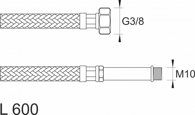 MINOTTI SBA Inox flexibilis bekötőcső 3/8" belső menet - M10 külső menet (hosszított szárral) 600 mm hossz