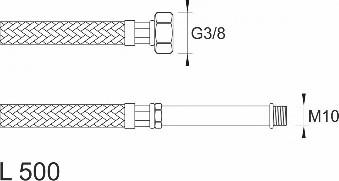 MINOTTI SBA Inox flexibilis bekötőcső 3/8" belső menet - M10 külső menet (hosszított szárral) 500 mm hossz