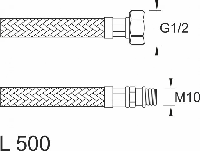 MINOTTI SBA Inox flexibilis bekötőcső 1/2" belső menet - M10 külső menet 500 mm hossz