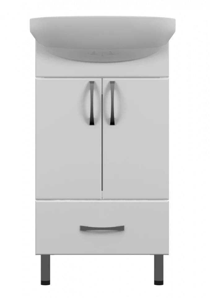 Az UNI 45 mosdós fürdőszobai szekrény a klasszikus elegancia és a modern kényelem ötvözete, amely ragyogó, magasfényű fehér felületével optikailag tágítja és világosabbá teszi a teret. Ez a professzionális nedvességálló fürdőszoba bútor emelt sűrűségű farostlemez (MDF) fronttal és minőségi, speciálisan kezelt korpusszal készül, így teljes körű védelmet nyújt a párás környezet káros hatásaival szemben. A 455 mm széles, kompakt kialakítás kétajtós tárolórésszel és egy alsó fiókkal rendelkezik, így minden piperecikknek fix helyet biztosít még a legkisebb helyiségekben is. A használati komfortot a beépített soft-close (csillapított záródású) mechanika teszi teljessé, amely garantálja az ajtók halk és kíméletes csukódását, megvédve a bútort a fizikai behatásoktól. A stabil lábakon álló kivitel és a precízen illeszkedő kerámia mosdó tartós és stílusos megoldást nyújt a napi rutinhoz.