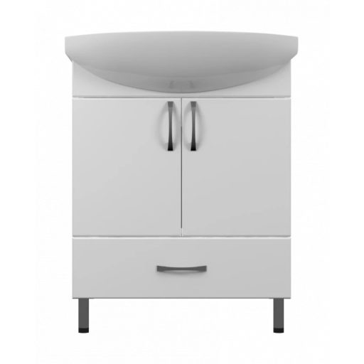 A PinoArt UNI 65 mosdós fürdőszobai szekrény az időtálló stílus és a mindennapi kényelem ötvözete, amely ragyogó, magasfényű fehér felületével tisztaságot és eleganciát sugároz. Ez a professzionális nedvességálló fürdőszoba bútor emelt minőségű alapanyagokból készül: a frontfelület lakkozott, emelt sűrűségű MDF-ből, a korpusz pedig speciálisan kezelt bútorlapból áll, így teljes körű védelmet nyújt a párás környezet ellen. A 650 mm széles kialakítás kétajtós tárolórésszel és egy alsó fiókkal rendelkezik, így bőséges helyet biztosít a piperecikkek és törölközők számára. A használati komfortot a beépített soft-close (csillapított záródású) mechanika teszi teljessé, amely garantálja az ajtók halk és kíméletes csukódását. A stabil lábakon álló kivitel és a precízen illeszkedő kerámia mosdó tartós és stílusos megoldást nyújt minden fürdőszobába.