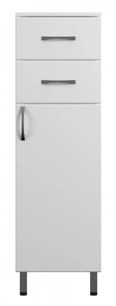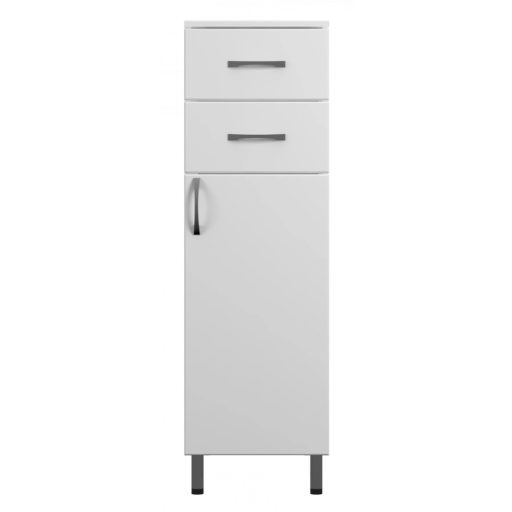Maximalizálja fürdőszobája tárolókapacitását az UNI 350 prémium magas szekrénnyel! Ez a sokoldalú, 35 cm (350 mm) szélességű bútor a legkisebb helyiségekben is elfér, miközben lenyűgöző rendszerezési lehetőséget kínál: a felső részén található két könnyen futó fiók ideális a kisebb kellékeknek, míg a tágas alsó ajtós rész bőséges helyet biztosít a tisztítószerek és törölközők számára. A bútor szerkezete prémium minőségű, speciálisan kezelt, nedvességálló MDF és iverica alapanyagokból készült, amelyek kiemelkedő ellenállást tanúsítanak a párával és a nedvességgel szemben, így garantáltan hosszú évekig megőrzi esztétikai állapotát. A 115,2 cm-es (1152 mm) magasság és a 34,4 cm-es (344 mm) mélység tökéletes egyensúlyt teremt a tágas tárolás és a helytakarékos elhelyezés között. A bútor stabil lábakon áll, ami nemcsak modern megjelenést ad, de megkönnyíti a padló alatti tisztítást és megvédi a bútort az esetleges állóvíztől. Fontos vásárlási információ: A termék összeszerelt állapotban kerül kiszállításra. Az ár a magas szekrényt tartalmazza a belső polcokkal együtt.