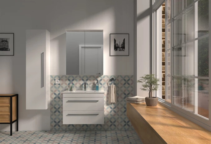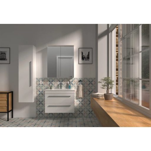 A LineART PRIMA ART 80 (0697) mosdós alsószekrény a modern fürdőszobák központi eleme, amely a letisztult formavilágot ötvözi a tartóssággal. A bútor prémium minőségű, vákuumpréselt MDF frontokkal és oldalakkal készül, amely speciális felületkezelésének köszönhetően kiemelten nedvességálló, így hosszú évekig ellenáll a párának és a közvetlen vízhatásoknak. A ragyogó, magasfényű fehér kivitel elegáns megjelenést kölcsönöz és optikailag tágítja a teret. A kétajtós, függesztett kivitel bőséges tárolóhelyet biztosít, miközben a Soft Close (csillapított) zsanérok garantálják a halk és biztonságos záródást. A szekrényhez egy pontosan illeszkedő, kiváló minőségű fehér kerámia mosdó tartozik.