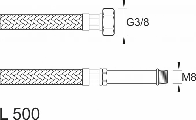 MINOTTI SBA Inox flexibilis bekötőcső 3/8" belső menet - M8 külső menet 500 mm hossz
