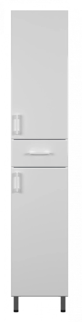 A SIRIS S magas fürdőszobai szekrény a modern tárolás és az elegáns megjelenés tökéletes ötvözete, amely ragyogó, magasfényű fehér felületével optikailag tágítja a teret. Ez a professzionális nedvességálló fürdőszoba bútor emelt sűrűségű MDF fronttal és minőségi korpusszal készül, így speciálisan a vizesblokkok párás környezetére lett tervezve, garantálva a hosszú élettartamot és a deformáció elleni védelmet. A 1840 mm-es magasság bőséges tárolókapacitást kínál, miközben a beépített soft-close (csillapított záródású) mechanika gondoskodik az ajtók és a fiók halk, kíméletes csukódásáról. A lábakon álló kivitel stabil tartást biztosít, a letisztult fém fogantyúk pedig stílusos keretet adnak a bútornak, amely bármely kortárs fürdőszoba központi dísze lehet.