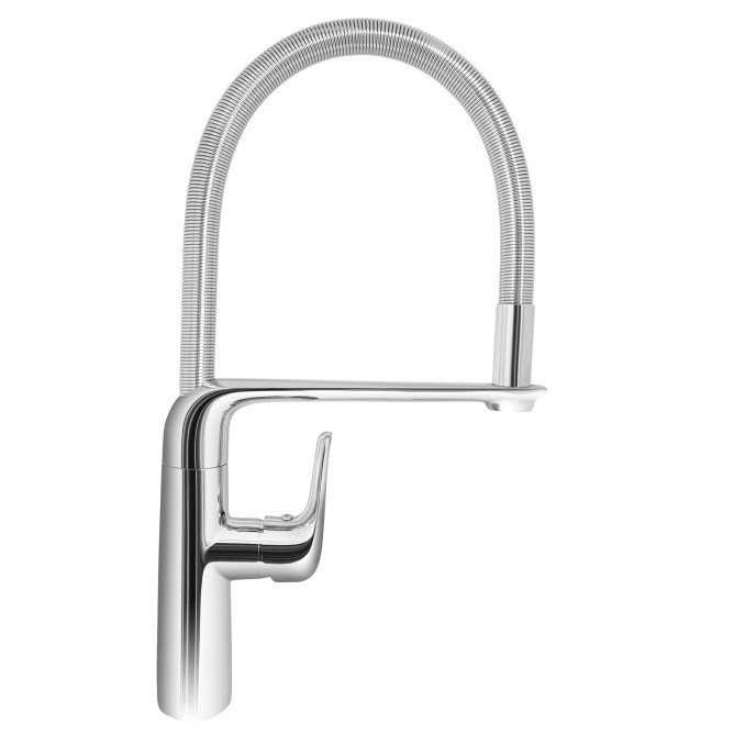 Vigyen ipari hatékonyságot otthoni konyhájába a MINOTTI Stela félprofesszionális csapteleppel, amely a nagykonyhai előöblítő rendszerek robusztus technológiáját ötvözi a modern esztétikával. A modell meghatározó eleme a rozsdamentes acél spirálrugóval merevített kifolyócső, amely maximális mozgásszabadságot és öntartó rugalmasságot biztosít a mindennapi munka során. A nagy teherbírású, mágneses dokkolóval ellátott stabilizáló kar extrém igénybevétel mellett is precíz rögzítést garantál a kétfunkciós zuhanyfejnek, lehetővé téve a váltást a lágy vízsugár és az intenzív öblítőpermet között. Ez a professzionális mérnöki megoldásokon alapuló szaniter a tartósság és a kiemelkedő ergonómia csúcsát képviseli.