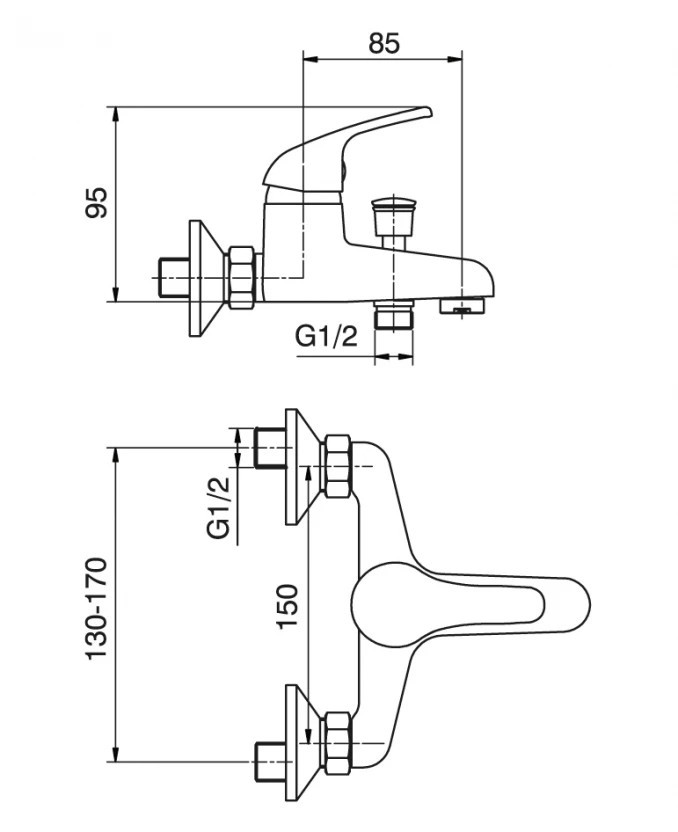 Falra szerelhető kádcsaptelep |
