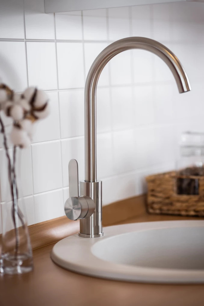 Vigyen professzionális stílust és modern eleganciát konyhájába a Minotti 4555 S/S egykaros mosogató csapteleppel! Ez a különleges, S/S (Stainless Steel / rozsdamentes acél) hatású modell a minimalista design és a kimagasló funkcionalitás jegyében született. Az extra magas, 400 mm-es íves kifolyócső és a 287 mm-es kifolyási magasság páratlan szabadságot biztosít: a legnagyobb fazekak megtöltése vagy a nagyméretű tepsik elmosogatása többé nem jelent kihívást. Az oldalsó elhelyezésű, ergonomikus kar segítségével a vízhőmérséklet és a mennyiség precízen, akár egy ujjal is szabályozható. A selyemfényű felület nemcsak modern és elegáns, hanem rendkívül ellenálló az ujjlenyomatokkal és a vízkővel szemben, így konyhája mindig tiszta és ragyogó marad.