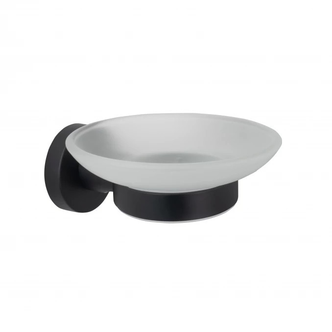 MINOTTI DARK ELEGANCE szappantartó, fehér üveg, matt fekete tartókonzollal
