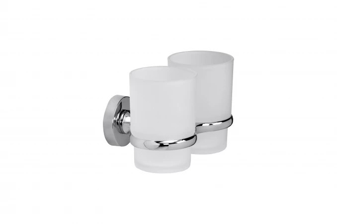 MINOTTI 50700 dupla pohártartó, fehér üveg, króm konzol