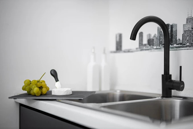 Vigyen drámai eleganciát és professzionális kényelmet konyhájába a MINOTTI Tubo Dark Elegance hattyúnyakú mosogató csapteleppel. A bársonyos matt fekete felület modern, karakteres megjelenést kölcsönöz a munkapultnak, miközben kiválóan ellenáll a mindennapi igénybevételnek. Ez a speciális, három bekötőcsöves modell kifejezetten alacsony nyomású rendszerekhez és átfolyós vízmelegítőkhöz készült, a magasított ív pedig bőséges teret biztosít a legmélyebb edények akadálymentes tisztításához.