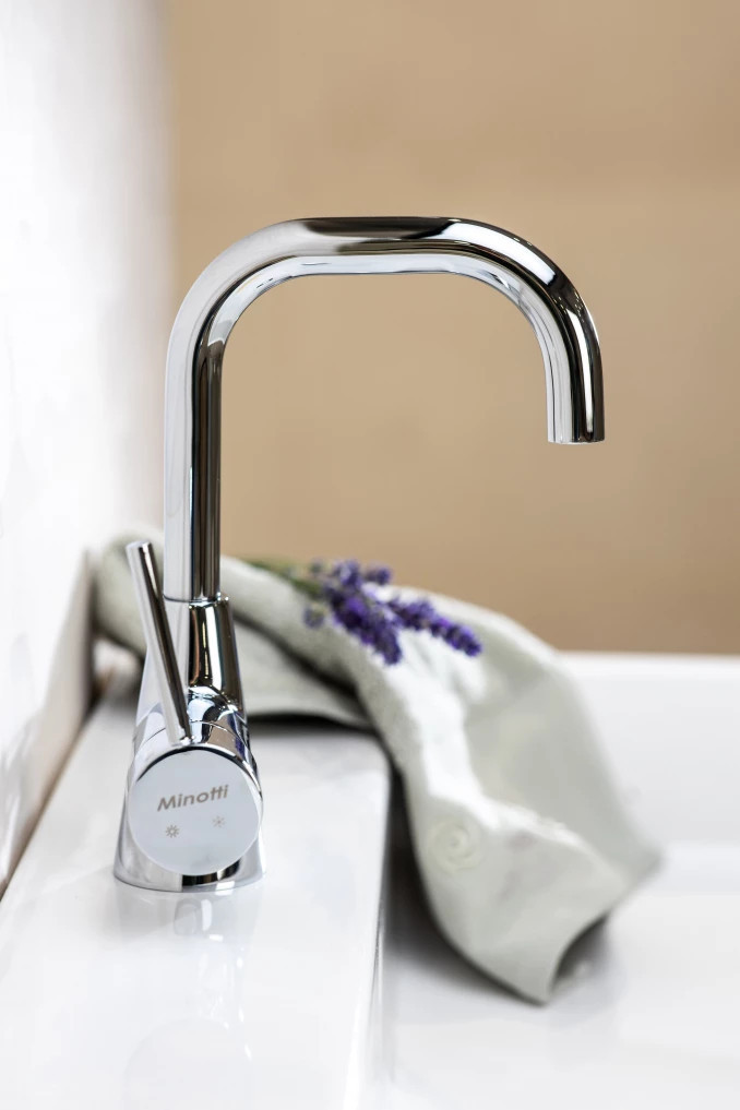 Minotti Tubo Labud Magasított Mosdó Csaptelep – Elegancia és Magasított Kényelem