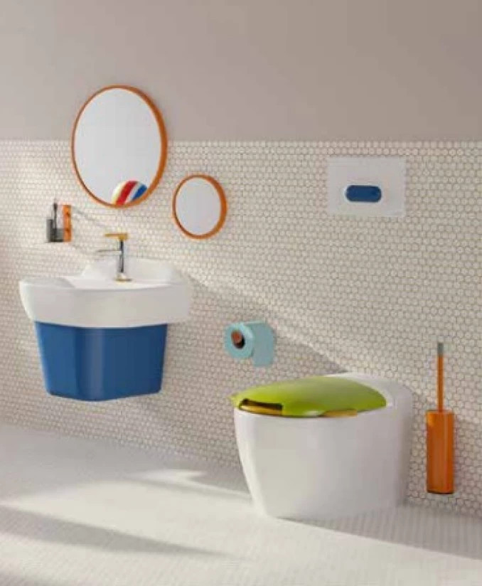 Tegye vidámmá és akadálymentessé gyermeke számára a fürdőszobai rutint a VITRA SENTO KIDS fali WC-vel, amelyet kifejezetten az óvodás és kisiskolás korosztály igényeihez terveztek. A falra függesztett kivitel nemcsak modern megjelenést kölcsönöz a helyiségnek, hanem a padló szabadon hagyásával jelentősen megkönnyíti a takarítást és a higiénia fenntartását is. A perem nélküli kialakítás és a VitrA Hygiene antibakteriális mázfelület garantálja a maximális tisztaságot, miközben az ergonomikus forma biztonságérzetet és kényelmet nyújt a kicsiknek az önállósodás minden lépésénél.