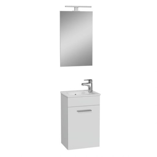 A VitrA Mia 40 fürdőszobai szett a minimalista design és a maximális helykihasználás mintapéldája, amely ragyogó, magasfényű fehér felületével modern eleganciát és világosságot visz a legkisebb terekbe is. Ez a professzionális nedvességálló fürdőszoba bútor emelt minőségű alapanyagokból készül: a váz és az ajtó speciális melamin bevonattal ellátott rostlemez, amely hatékonyan ellenáll a párás környezetnek és a közvetlen nedvességnek, megakadályozva a szerkezet vetemedését. A mindössze 390 mm széles, fali függesztett kivitelű szekrény bőséges tárolóhelyet biztosít a piperecikkek számára, miközben a szetthez tartozó, tartós kerámia mosdó és a felső LED világítással ellátott tükör teljes körű megoldást nyújt a napi rutinhoz. A kompakt méret és a letisztult vonalvezetés nemcsak esztétikus, hanem a padlófelület takarítását is jelentősen leegyszerűsíti.