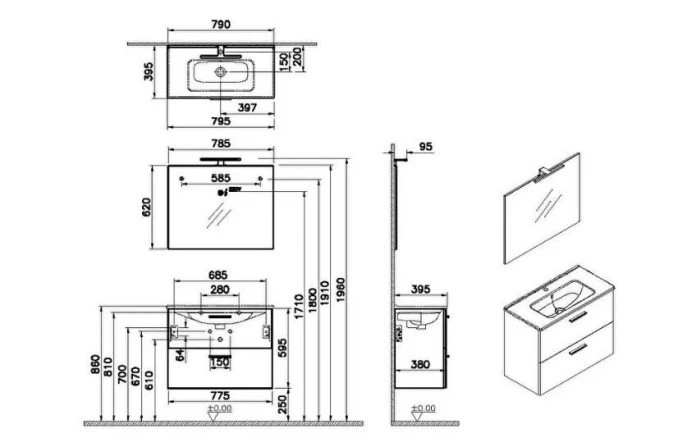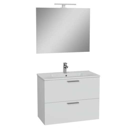 A VitrA MIA (75024) komplett fürdőszobai szett a modern elegancia és a praktikus tárolás csúcsa. Ez a magasfényű fehér összeállítás egy tágas, kétfiókos alsószekrényt, egy minőségi kerámia mosdót és egy integrált LED világítással szerelt fali tükröt tartalmaz. A bútor prémium minőségű, háromrétegű melamin bevonatú MDF-ből készült, amely a speciális lakkozásnak köszönhetően kiemelten nedvességálló, így hosszú évekig ellenáll a fürdőszobai párának. A függesztett kivitel Soft Close (csillapított) fiókrendszerrel szerelt, ami garantálja a halk és biztonságos használatot. A pontos beépítéshez kérjük, vegye figyelembe a műszaki rajz milliméteres adatait.