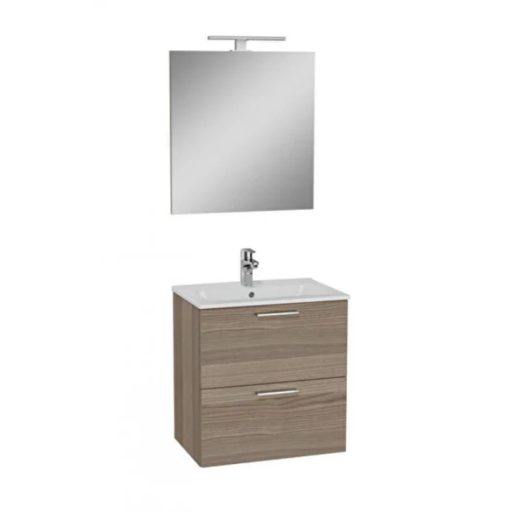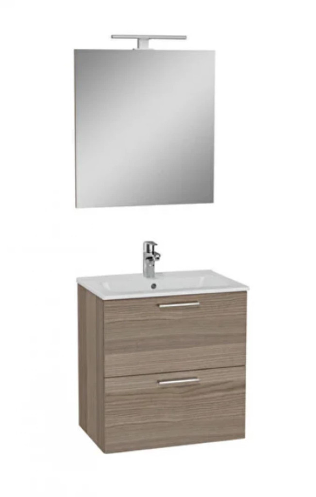 A VitrA MIA Cordoba (75103) komplett fürdőszobai szett a természetes fa melegségét és a modern, funkcionális tervezést hozza el otthonába. Ez az elegáns barna fahatású összeállítás egy mosdó alatti szekrényt, egy minőségi kerámia mosdót és egy integrált LED világítással szerelt tükröt tartalmaz. A bútor prémium minőségű, melamin bevonatú MDF-ből készült, amelynek speciális felülete kiemelten nedvességálló, így hosszú évekig ellenáll a fürdőszobai párának és a közvetlen vízhatásoknak. A kétfiókos, függesztett kivitel Soft Close (csillapított) mechanikával rendelkezik, amely garantálja a halk és biztonságos használatot. A hibátlan beépítés érdekében kérjük, vegye figyelembe a műszaki rajz milliméterpontos adatait.