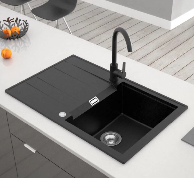 A modern konyha alapköve a MILO AVANGARD gránit mosogató, amely a markáns stílust és a kiemelkedő funkcionalitást egyesíti. A mélyfekete Lava Stone árnyalat és a határozott, szögletes vonalvezetés tekintélyt parancsoló megjelenést kölcsönöz a munkalapnak. A tágas, 215 mm mély medence a legnagyobb edények elmosogatását is kényelmessé teszi, míg a bordázott csepptálca hatékony vízelvezetést biztosít. A DURAQUARZ technológiának köszönhetően a felület rendkívül ellenálló a karcolásokkal, ütésekkel és a hirtelen hőingadozással szemben is. A csomag tartalmaz egy helytakarékos manuális szifont és egy praktikus automata dugóemelőt, így a víz leeresztése kényelmesen, a tekerőgomb elforgatásával vezérelhető.
