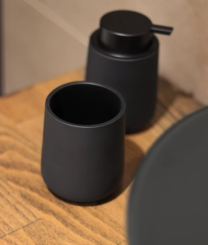 Minotti modern matt fekete fogkefetartó, pultra helyezhető