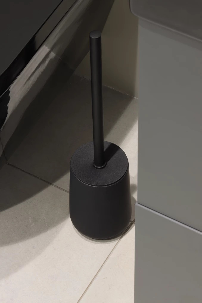 Teremtsen modern és karakteres hangulatot fürdőszobájában ezzel a minimalista, matt fekete kivitelű, szabadon álló kiegészítővel. A letisztult, hengeres forma és az elegáns, tükröződésmentes felület a legújabb belsőépítészeti trendeket idézi, miközben diszkrét és funkcionális eleme marad a térnek. A minőségi anyaghasználat és a stabil talpazat hosszú élettartamot, valamint könnyű, higiénikus tisztántarthatóságot biztosít a mindennapok során.