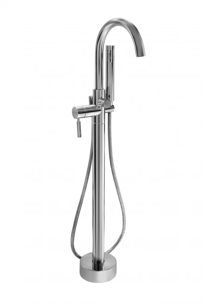 Ez a padlóra szerelhető csaptelep a modern elegancia megtestesítője, amely tökéletes kiegészítője a szabadon álló kádaknak, kortárs fürdőszoba designhoz. Különleges jellemzője a kecses, ívesen hajló kifolyócső, amely finom, mégis határozott megjelenést kölcsönöz a terméknek.
