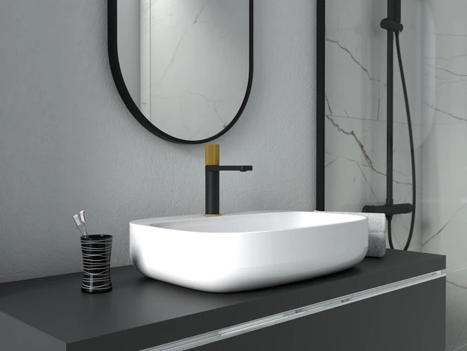 Vigye el a luxus és a modern elegancia legmagasabb szintjét fürdőszobájába a COPEN NOOK GRIP különleges, kombinált felületű csaptelepével! Ez az exkluzív modell a matt fekete test stabilitását és a csiszolt arany (Rose Gold/Brushed Gold) részletek ragyogását ötvözi, így teremtve meg a tökéletes egyensúlyt a minimalizmus és a pompa között.