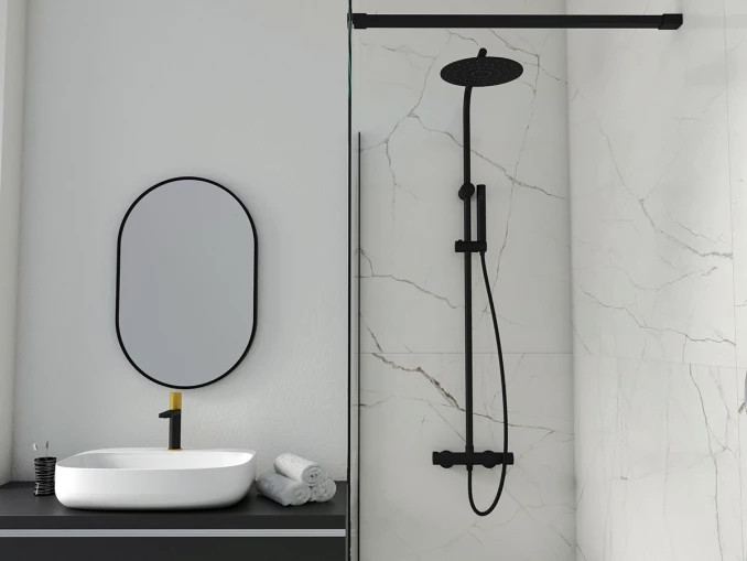 Vigyen modern eleganciát és professzionális megjelenést fürdőszobájába a COPEN NOOK komplett zuhanyrendszerrel! A letisztult, kerek formavilág és a bársonyos matt fekete felületkezelés a kortárs belsőépítészet egyik legnépszerűbb választása, amely azonnal stílusos oázissá varázsolja a helyiséget. A nagyméretű, 250 mm átmérőjű esőztető fejzuhany a trópusi eső lágy érintésével kényezteti, míg az ergonomikus kézizuhany és a precíz, alsó váltókapcsolóval ellátott csaptelep a mindennapi praktikumot szolgálja. A prémium sárgaréz alapanyag és az ujjlenyomat-mentes bevonat garantálja a hosszú élettartamot és a könnyű tisztíthatóságot, így ez a rendszer évekig fürdőszobája megbízható és látványos eleme marad.