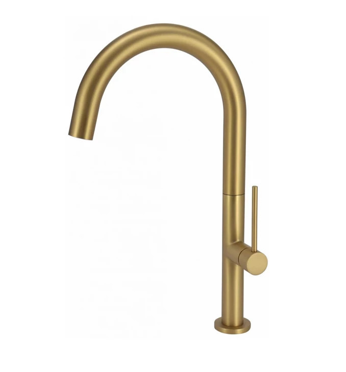 Vigyen fenséges eleganciát és modern luxust konyhájába a prémium COPEN Salt hattyúnyakú csapteleppel, melynek kifinomult csiszolt arany felülete a kortárs belsőépítészet egyik legkeresettebb stíluseleme. A kiemelkedően magasított, ívelt kifolyócső páratlan szabadságot biztosít a pult felett, így a nagyméretű edények megtöltése és tisztítása is rendkívül kényelmessé válik. A beépített, magas minőségű kerámiabetét és a víztakarékos Neoperl perlator gondoskodik a precíz, halk működésről és a fenntartható vízhasználatról. Ez a tartós sárgarézből készült, selyemfényű szaniter nem csupán egy konyhai eszköz, hanem konyhája stílusos és meghatározó látványeleme.