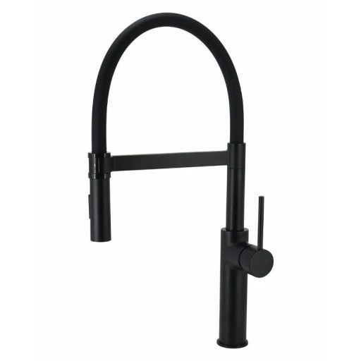 Vigyen ipari hatékonyságot és modern, karakteres eleganciát konyhájába a COPEN Pepper B csapteleppel, amely a professzionális előöblítő rendszerek technológiáját ötvözi a lakossági esztétikával. A modell központi eleme a nagy teherbírású stabilizáló kar, amely extrém igénybevétel mellett is precíz rögzítést garantál a kifolyófejnek, miközben a bársonyos matt fekete felület exkluzív megjelenést kölcsönöz a munkapultnak. A speciális, magas ellenálló képességű élelmiszeripari szilikon elasztomerből készült rugalmas kar 360 fokos mozgásszabadságot biztosít, a kétfunkciós zuhanyfej pedig lehetővé teszi a váltást a lágy vízsugár és a magas nyomású öblítőpermet között. Ez a professzionális mérnöki megoldásokon alapuló szaniter a maximális ergonómiát és az ipari színvonalú tartósságot hozza el a mindennapi konyhai munkafolyamatokba.