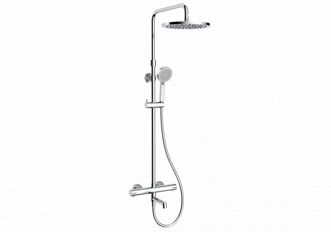 Tapasztalja meg a kompromisszumok nélküli kényelmet és biztonságot a COPEN CoolTouch termosztátos rendszerrel! Ez a sokoldalú megoldás egyben kínálja a kényeztető esőztető fejzuhanyt, a praktikus kézizuhanyt és egy innovatív, mozgatható kádkiömlőt, amely használaton kívül elfordítható, így tágasabb teret enged a zuhanyzáshoz. A CoolTouch technológia megvédi Önt a forró felületektől, a precíz termosztát pedig állandó vízhőmérsékletet biztosít. A modern, hengeres formavilág és a ragyogó króm felület eleganciát kölcsönöz fürdőszobájának, miközben minden vízcsepp a tökéletes ellazulást szolgálja.