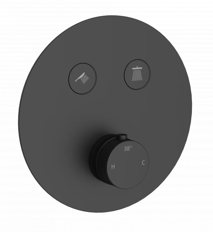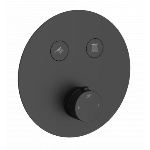 Vigyen modern, bársonyos eleganciát és teljes biztonságot fürdőszobájába a COPENmatt fekete termosztátos előlapjával. A klasszikus kerek formavilág és a kortárs matt fekete felület tökéletes harmóniát teremt a modern belső terekben. A CoolTouch technológia kiemelt védelmet nyújt családja számára: az innovatív belső kialakítás megakadályozza, hogy az előlap és a kezelőszervek átforrósodjanak, így elkerülhetők a véletlen égési sérülések. A precíz hőmérséklet-beállítás és a letisztult design találkozása ez a termék, amely tartós dísze és funkcionális központja lesz bármely zuhanyzónak vagy kádas megoldásnak.