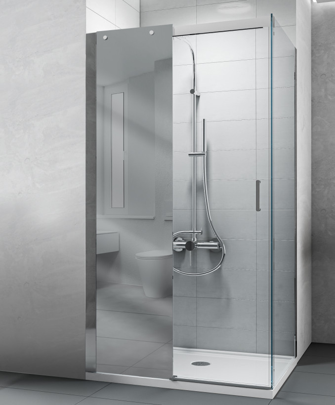 A COPEN Titan tükörüveges zuhanyajtó a funkcionalitás és a luxus egyedülálló ötvözete, amely praktikus megoldást kínál a modern fürdőszobákba. Az üvegfelületbe integrált tükör nemcsak tágítja a teret, hanem kényelmi funkciót is ellát, miközben a 8 mm-es edzett biztonsági üveg maximális stabilitást garantál. A masszív króm profilok és a precíziós görgőrendszer hosszú élettartamot és halkan futó, könnyed ajtónyitást biztosítanak minden nap.