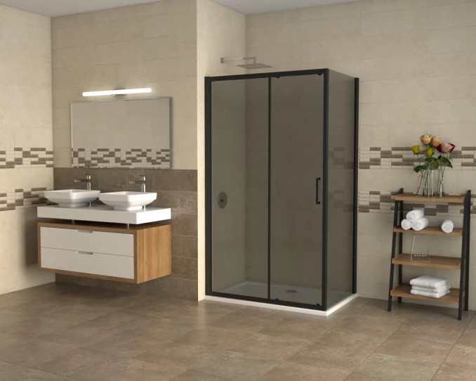Tolóajtós zuhanyajtó ATLAS BLACK 1100x1950 mm sötétített víztiszta üveg, fekete keret, 6 mm