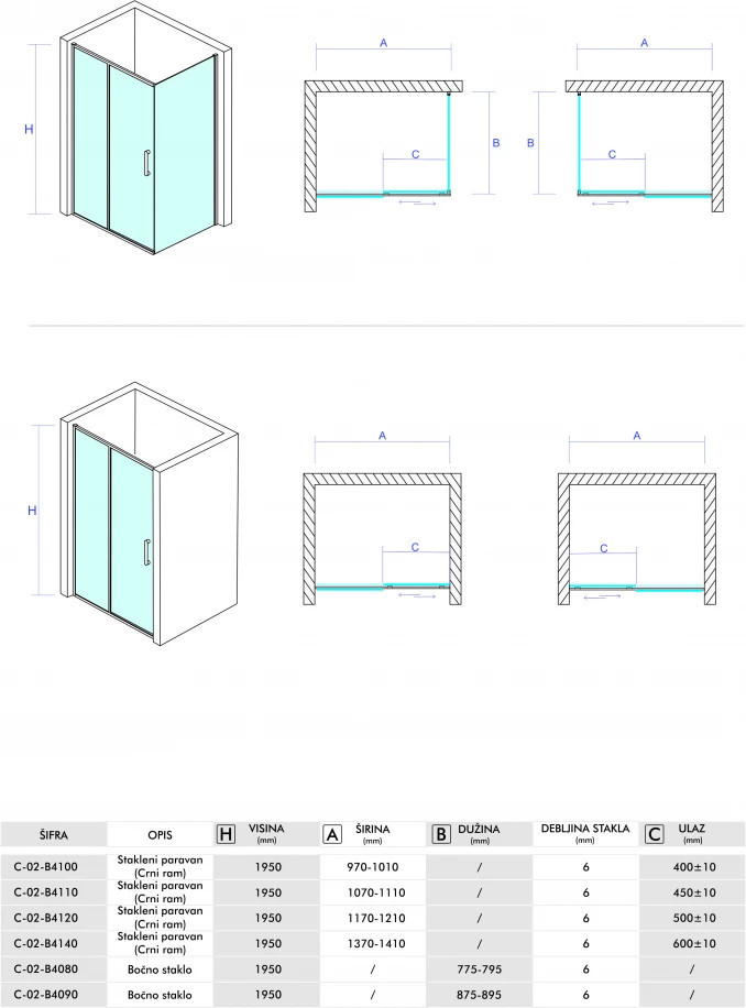 Tolóajtós zuhanyajtó ATLAS BLACK 1200x1950 mm sötétített víztiszta üveg, fekete keret, 6 mm