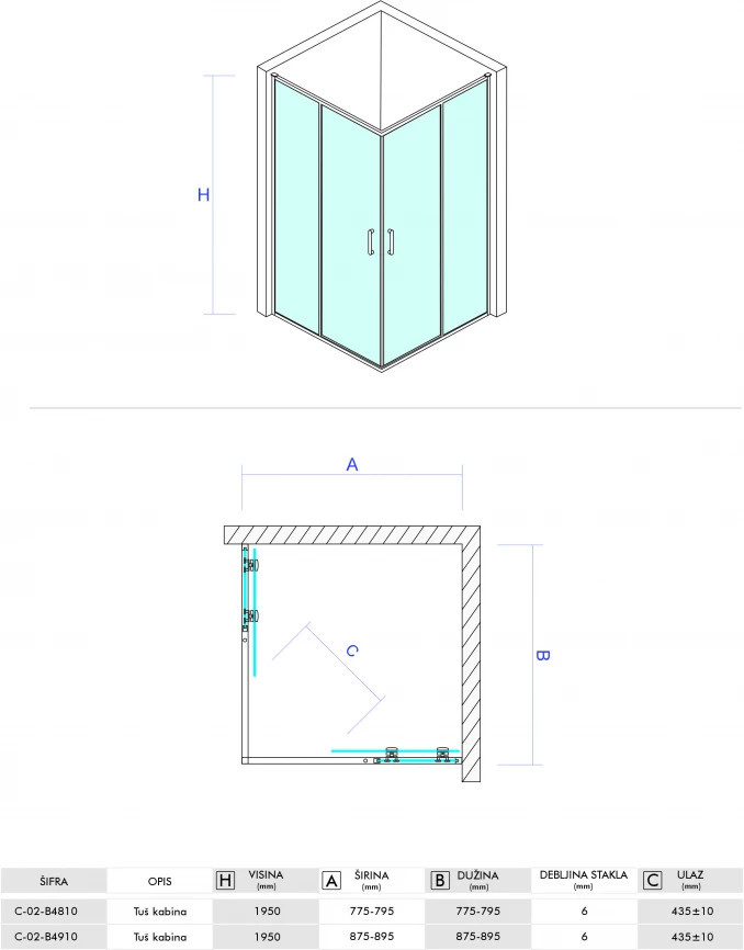 - Típus: Négyszögletes / szögletes zuhanykabin