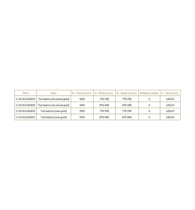 A kabin 195 cm (1950 mm) magassága tágas érzetet nyújt, a 6 mm vastag víztiszta edzett biztonsági üveg pedig egyszerre nyújt légies megjelenést és maximális biztonságot. A precíz záródásról és a tartósságról a prémium minőségű keretszerkezet gondoskodik.