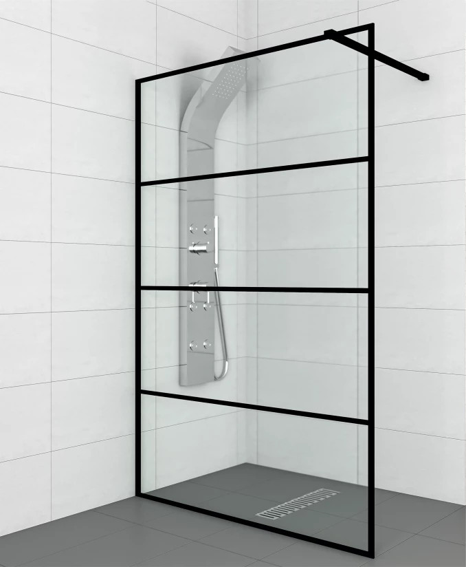 Teremtse meg a modern loft életérzést fürdőszobájában a COPEN MONTE walk-in zuhanyfallal, amely az indusztriális stílus jegyeit ötvözi a letisztult eleganciával. A vízszintes fekete osztásokkal tagolt, 8 mm vastag biztonsági üveg határozott karaktert és struktúrát ad a térnek, miközben megőrzi a zuhanyzó szellős és nyitott jellegét. Az akadálymentes belépés és a strapabíró, matt fekete profilrendszer a legmagasabb szintű komfortot és tartósságot garantálja minden modern otthon számára.