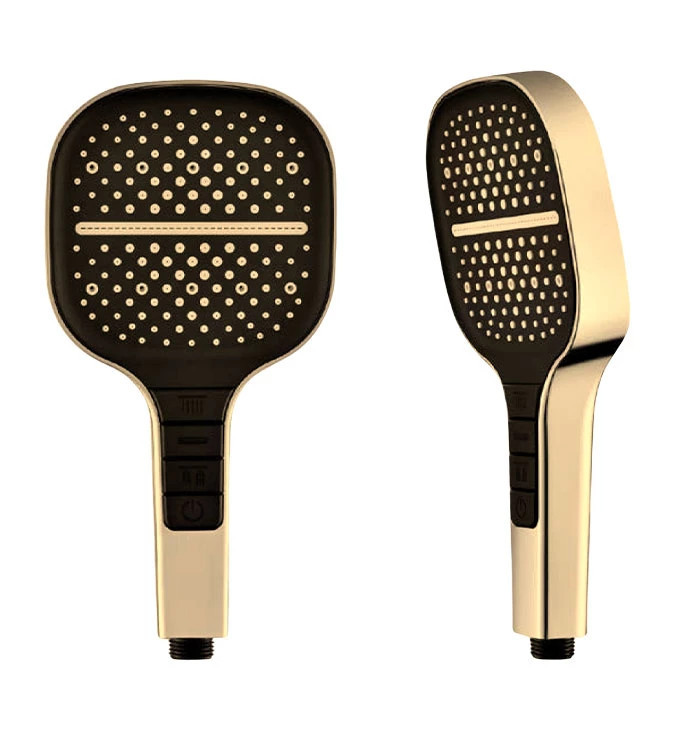 Emelje új szintre a zuhanyzás élményét ezzel az exkluzív megjelenésű COPEN kézi zuhanyfejjel, amely a modern matt fekete és a luxushatású arany színek merész kombinációjával hódít. A nagyméretű, 130 mm-es, lekerekített négyzet alakú fej széles vízsugarat bocsát ki, így teljes testet lefedő, frissítő élményt nyújt. A készülék 3 választható funkcióval rendelkezik, amelyek között a markolaton elhelyezett, kézre álló gombokkal válthatunk, így az esőztető és masszázs üzemmódok pillanatok alatt elérhetőek. Az ergonomikus kialakítás és a prémium anyaghasználat garantálja a hosszú élettartamot, míg a stílusos fekete fúvókafelület és az aranyozott test markáns dísze lesz minden modern fürdőszobának.