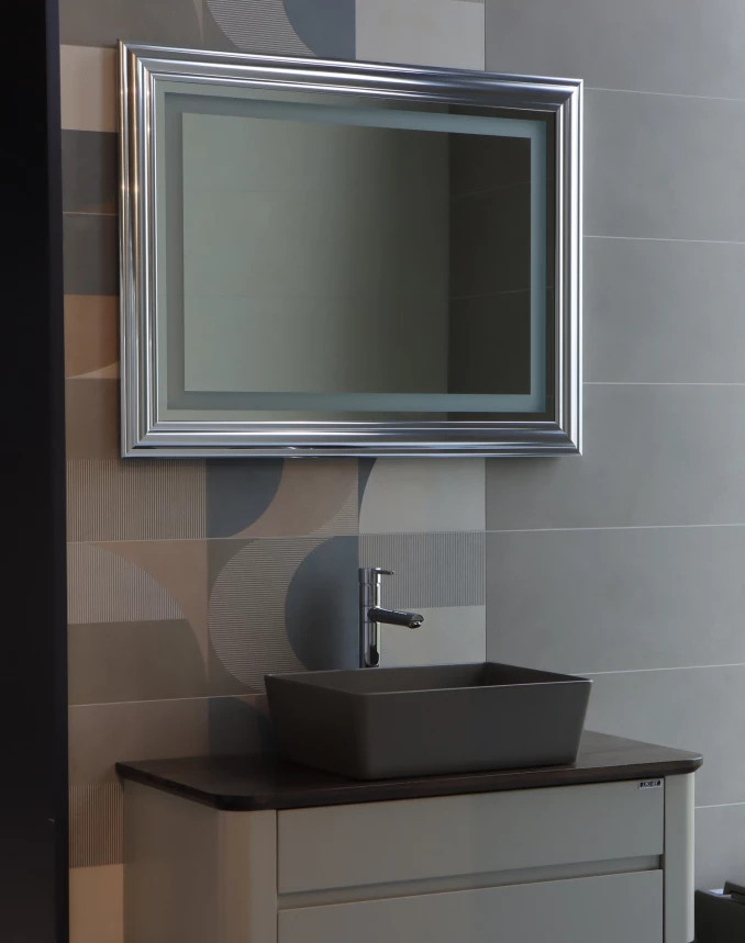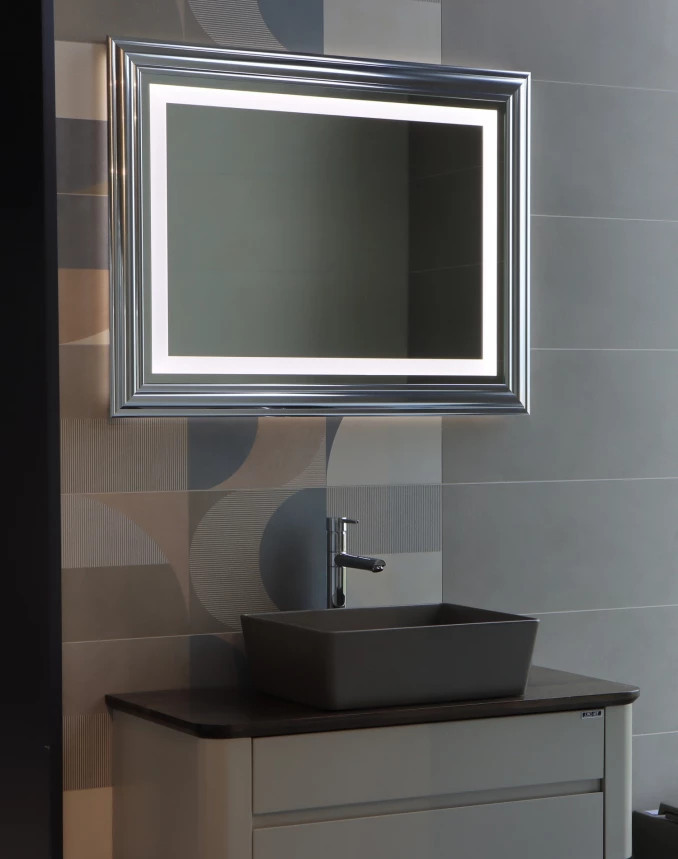 COPEN Ezüst keretes LED fürdőszobai tükör – 100x76 cm