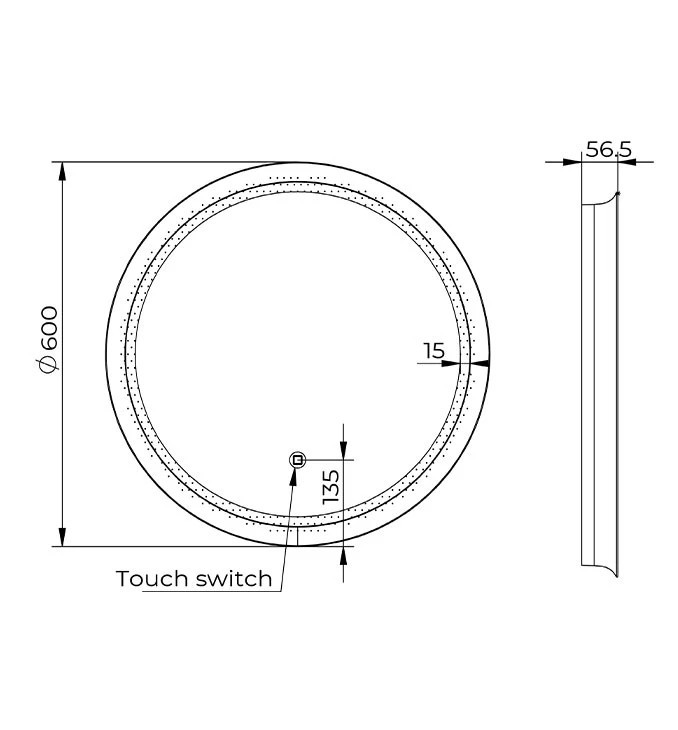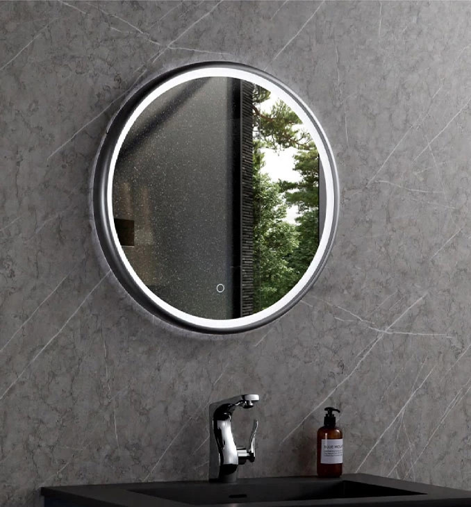 COPEN Kerek LED fürdőszobai tükör széles fekete kerettel – 60 cm
