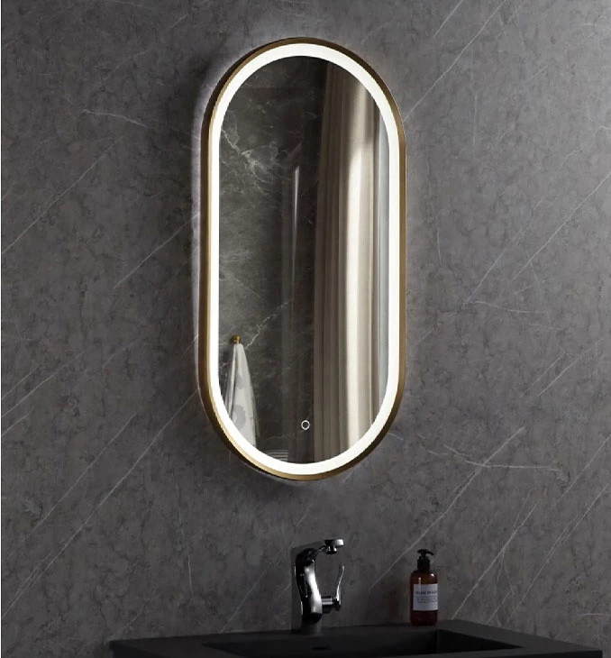 COPEN Ovális LED fürdőszobai tükör arany alumínium kerettel – 50x90 cm