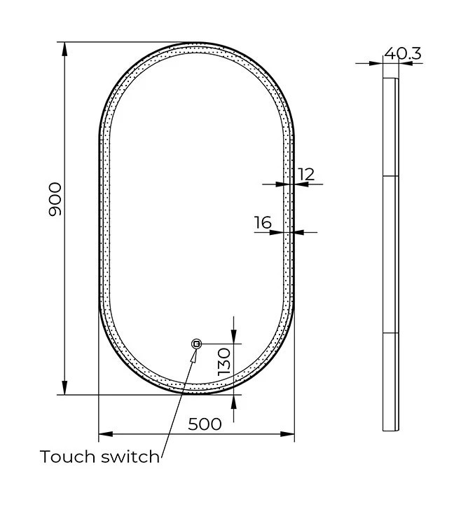 COPEN Ovális LED fürdőszobai tükör gunmetal alumínium kerettel – 50x90 cm