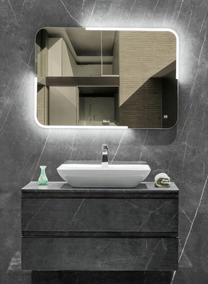 COPEN Modern lekerekített LED fürdőszobai tükör érintőkapcsolóval – 80x60 cm