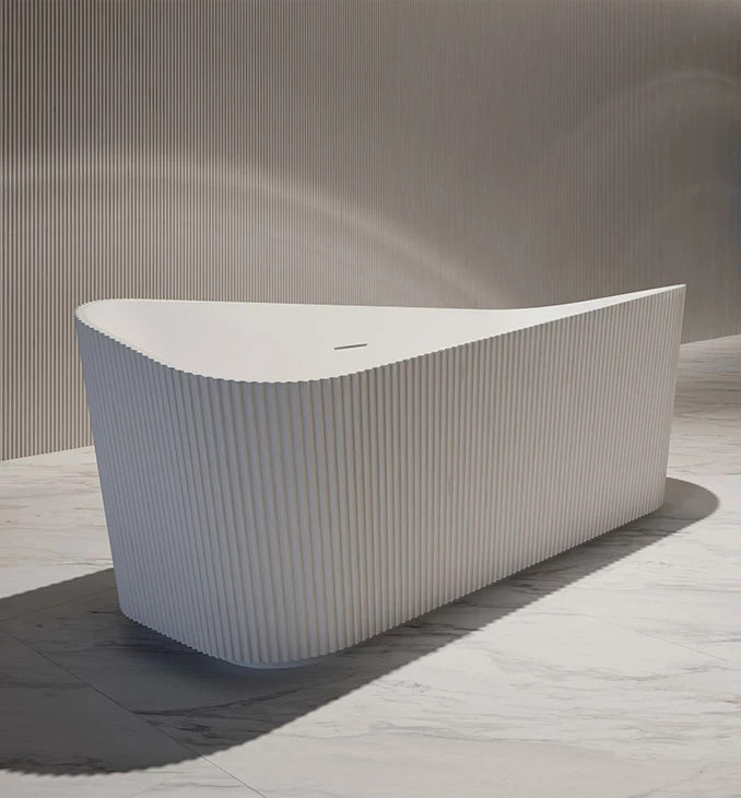 A Copen Brigitte szabadon álló kád az aszimmetrikus design és a modern elegancia mesterműve, most selymes matt fehér kivitelben. A kád egyik oldala kecsesen megemelt, amely nemcsak vizuálisan teszi különlegessé a teret, hanem ergonomikus támaszt is nyújt a hátnak a tökéletes ellazuláshoz. A matt felület lágy, organikus tapintást és kifinomult megjelenést kölcsönöz, miközben a prémium szaniter akril alapanyag gondoskodik a kiváló hőtartó képességről. Ez a szoborszerű modell bármely modern fürdőszoba központi eleme lehet, ahol a stílus és a kényelem találkozik. Alakítsa át otthonát egy privát wellness szigetté ezzel a különleges, karakteres káddal!