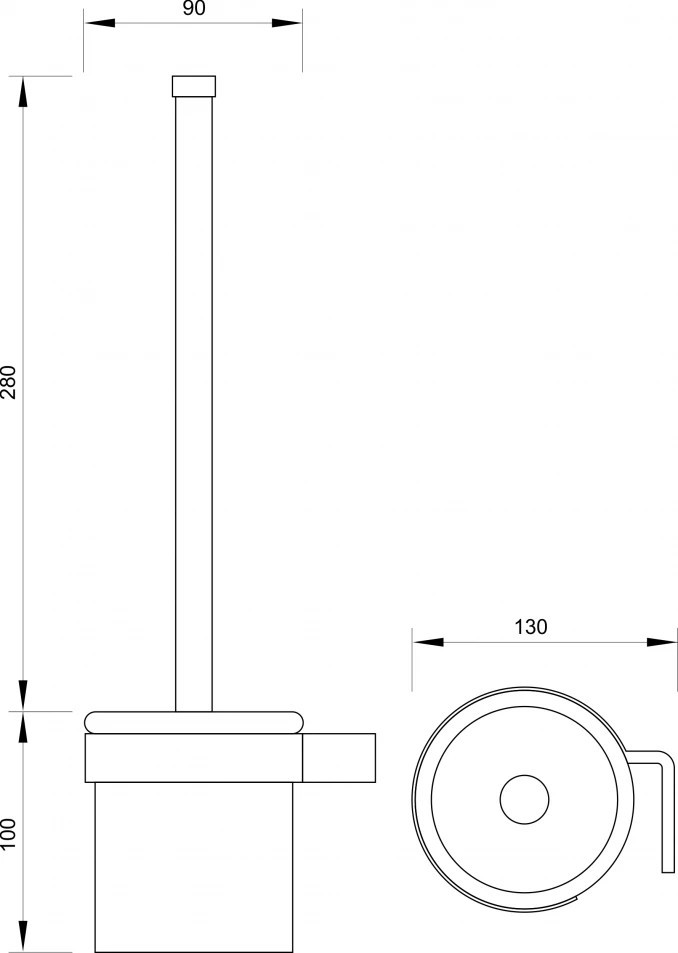 - Teljes magasság: 380 mm (280 mm nyél + 100 mm tartó)