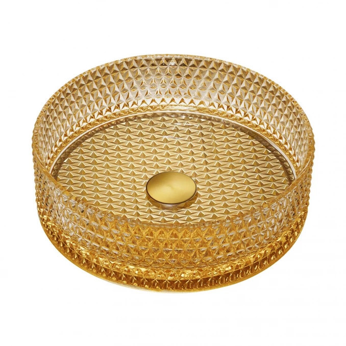 Vigyen szikrázó luxust és exkluzív eleganciát fürdőszobájába ezzel a lenyűgöző arany színű COPEN üvegmosdóval. A tökéletes kör alakú forma és a külső felületen végigfutó, precíz geometrikus textúra a fény játékával különleges mélységet és ragyogást kölcsönöz a szaniternek. Nem csupán egy mosdókagyló, hanem a fürdőszoba ékköve, amely a modern glamúr stílus legjavát képviseli. A pultra helyezhető kialakítás kiemeli az üveg légies könnyedségét és nemes csillogását. Válaszd ezt a modellt, ha egyedi, látványos és kompromisszumok nélküli prémium megoldást keresel otthonodba!