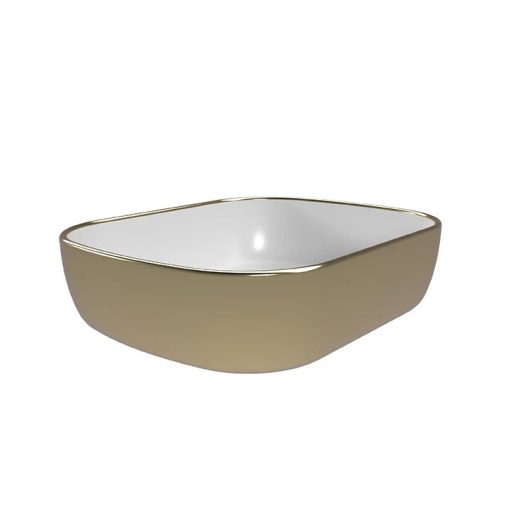 Emelje a fürdőszobai luxust új szintre ezzel a lenyűgöző COPEN pultra helyezhető mosdóval. A klasszikus fehér kerámia belsőt egy exkluzív, fényes arany külső perem koronázza meg, amely azonnal a helyiség ékkövévé és elegáns fókuszpontjává teszi a szanitert. A lágyan lekerekített, modern forma és az 505 mm-es szélesség tágas, kényelmes használatot biztosít, miközben a prémium anyaghasználat garantálja a tartósságot és a ragyogó megjelenést. Tökéletes választás azoknak, akik nem félnek a merész megoldásoktól, és a mindennapokban is a glamúr életérzést keresik.